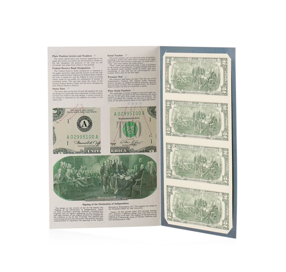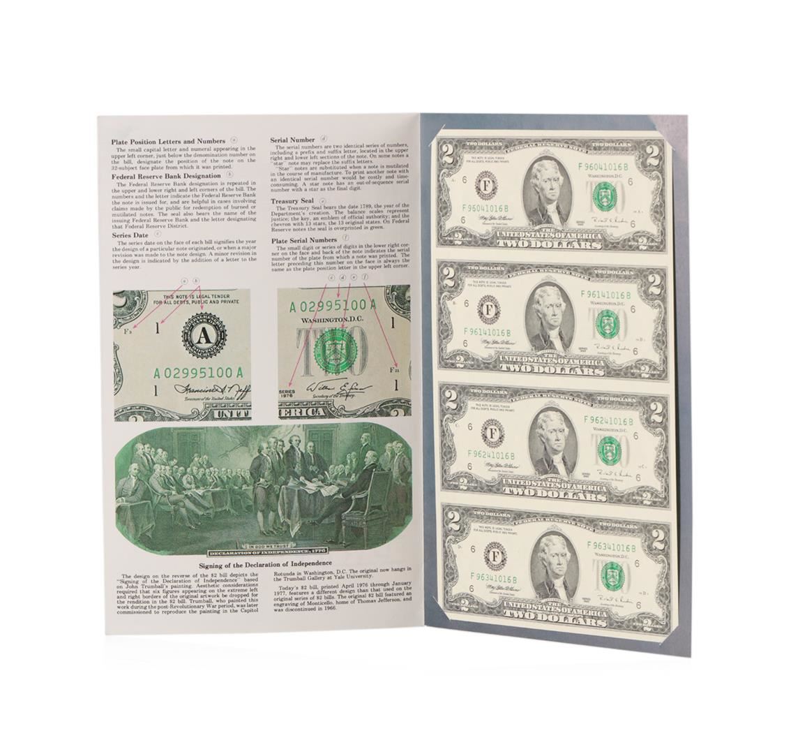 One Uncut sheet of (4) 1995 $2 Federal Reserve Notes.