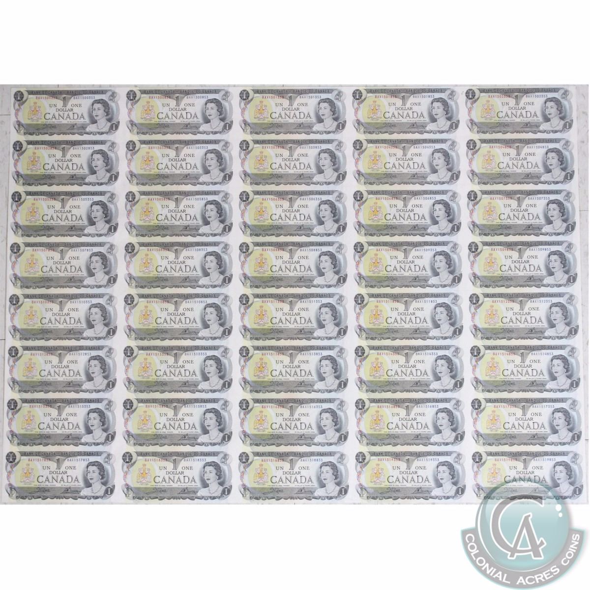 Uncut sheet of 40 x 1973 replacement $1.00 notes, 5 x 8 format with BAX prefix. The sheet is in AU