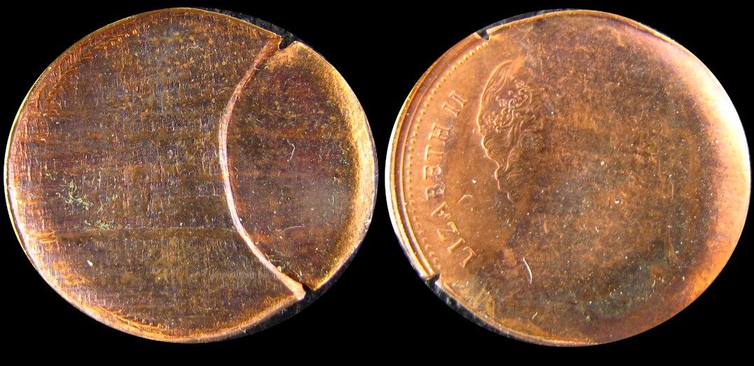 Undated 1¢ Elizabeth ERROR example. Off Centre Split Planchet.