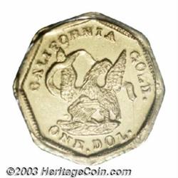 <table><tr><td><TABLE cellSpacing=0 cellPadding=0 width="100%" bgColor=#000000 border=0><TBODY> <TR><TD width="100%"><TABLE cellSpacing=1 cellPadding=3 width="100%" border=0><TBODY><TR><TD width="100%" bgColor=#79735c><FONT face=arial color=#ffffff size=3><B>Description</B> </FONT></TD></TR><TR><TD width="100%" bgColor=#ffffff><FONT face=arial size=2><B>Undated $1 Liberty Octagonal 1 Dollar, BG-501, Low R.5, MS63 PCGS.</B></I> The only undated Octagonal Dollar variety. Period One California Dollars are always in demand, especially if they have an unusual motif. BG-501 is among a small number of varieties that feature an eagle, shield, and banner that strongly resembles the obverse design of the legendary Humbert slugs then in circulation. This prooflike canary-gold representative is meticulously struck and seemingly has eye appeal that exceeds the assigned grade. O in CALIFORNIA is widely repunched, and faint die cracks (as made) travel below RNIA in CALIFORNIA. Other mint-made die cracks journey to the right of the shield and through the right end of the ribbon.<BR><I>From the Holman Family Collection.</B></I> </FONT></TD></TR></TBODY></TABLE></TD></TR></TBODY></TABLE><BR><A name=PricesRealized></A><TABLE cellSpacing=0 cellPadding=0 width="100%" bgColor=#000000 border=0><TBODY><TR><TD width="100%"><TABLE cellSpacing=1 cellPadding=3 width="100%" border=0><TBODY><TR><TD width="100%" bgColor=#79735c><A name=PR><FONT face=arial color=#ffffff size=3><B>Previous Prices from Heritage Auctions</B> </FONT></A></TD></TR><TR><TD bgColor=#f6f6ed><TABLE cellSpacing=0 cellPadding=0 width="100%" border=1><TBODY><TR><TD align=middle width="33%"><B>Date</B></TD><TD align=middle width="33%"><B>Service</B></TD><TD align=middle width="33%"><B>Price</B></TD></TR><TR bgColor=whitesmoke><TD width="33%"><B>07/30/1994</B></TD><TD width="33%">PCGS</TD><TD width="33%">$2,035.00</TD></TR></TBODY></TABLE></TD></TR><TR><TD bgColor=#ffffff><FONT face=arial size=1 ?>PLEASE NOTE: All prices realized reflect the final hammer price PLUS the buyer's premium in auctions that charge a buyer's premium. Each item has a notation at the top of the listing indicating whether that lot included a buyer's premium. Example: A item that sells with a final hammer price of $100 and a 20% buyer's premium will display with a price realized of $120. All information listed is intended to be as accurate as possible, but errors are possible. Please use this guide carefully and inform us of any inaccuracies. </FONT></TD></TR></TBODY></TABLE></TD></TR></TBODY></TABLE><BR><TABLE cellSpacing=0 cellPadding=0 width="100%" bgColor=#000000 border=0><TBODY><TR><TD width="100%"><TABLE cellSpacing=1 cellPadding=3 width="100%" border=0><TBODY><TR><TD width="100%" bgColor=#79735c colSpan=6><FONT face=arial color=#ffffff size=3><B>Price Guide*</B> </FONT></TD></TR><TR bgColor=#f6f6ed><TD align=middle><B>Grade</B> </TD><TD align=middle><B>Coin World<BR>(Trends)</B> </TD><TD align=middle><B>Numismedia<BR>Retail</B> </TD><TD align=middle><B>Numismedia<BR>Wholesale</B> </TD><TD align=middle><B>Coin<BR>Universe</B> </TD><TD align=middle><B>Heritage<BR>Value Index</B> </TD></TR><TR bgColor=#ffffff><TD align=middle>62</TD><TD align=right>---</TD><TD align=right>---</TD><TD align=right>---</TD><TD align=right>---</TD><TD align=right>---</TD></TR><TR style="FONT-WEIGHT: bold" bgColor=#cccfdd><TD align=middle>63</TD><TD align=right>---</TD><TD align=right>---</TD><TD align=right>---</TD><TD align=right>---</TD><TD align=right>---</TD></TR><TR bgColor=#ffffff><TD align=middle>64</TD><TD align=right>---</TD><TD align=right>---</TD><TD align=right>---</TD><TD align=right>---</TD><TD align=right>---</TD></TR><TR bgColor=#ffffff><TD colSpan=6><FONT size=1>*All information listed is intended to be as accurate as possible, but errors are possible. No item may be returned or refused based on this information which is provided as a service to our customers. You should contact each pricing source directly to determine the accuracy of this information. </FONT></TD></TR></TBODY></TABLE></TD></TR></TBODY></TABLE><BR><TABLE cellSpacing=0 cellPadding=0 width="100%" bgColor=#000000 border=0><TBODY><TR><TD width="100%"><TABLE cellSpacing=1 cellPadding=3 width="100%" border=0><TBODY><TR><TD width="100%" bgColor=#79735c><FONT face=arial color=#ffffff size=3><B>Population Guide</B> </FONT></TD></TR><TR bgColor=#ffffff><TD align=middle><!-- Begin Output of Population Grid--><TABLE cellSpacing=0 cellPadding=0 width="100%" border=0><TBODY><TR><TD vAlign=center><TABLE cellSpacing=0 width="100%" border=1 cellsadding="3"><TBODY><TR><TD vAlign=center><TABLE cellSpacing=0 cellPadding=3 width="100%" border=1><TBODY><TR><TD vAlign=center align=middle bgColor=#f0f1e8 colSpan=2 <CENTER><FONT face=Arial size=2><B>PCGS Pop </B></FONT><CENTER></CENTER></TD><TD vAlign=center align=middle bgColor=#f0f1e8 colSpan=2><CENTER><FONT face=Arial size=2><B>NGC Pop</B></CENTER></FONT></TD></TR><TR><TD vAlign=center><FONT face=Arial size=2>(63)</FONT> </TD><TD vAlign=center align=right><FONT face=Arial size=2>5</FONT> </TD><TD vAlign=center><FONT face=Arial size=2>(63)</FONT> </TD><TD vAlign=center align=right><FONT face=Arial size=2>0</FONT> </TD></TR><TR><TD vAlign=center><FONT face=Arial size=2>(>63)</FONT> </TD><TD vAlign=center align=right><FONT face=Arial size=2>0</FONT> </TD><TD vAlign=center><FONT face=Arial size=2>(>63)</FONT> </TD><TD vAlign=center align=right><FONT face=Arial size=2>0</FONT> </TD></TR></TBODY></TABLE></TD></TR></TBODY></TABLE></TD></TR></TBODY></TABLE><!-- End Output of Population Grid--></TD></TR></TBODY></TABLE></TD></TR></TBODY></TABLE><BR><TABLE cellSpacing=0 cellPadding=0 width="100%" bgColor=#000000 border=0><TBODY><TR> Important notice: Heritage usually auctions material at the rate of 200-250 lots per hour. On some occasions eBay Live bid software or the Internet may not be able to keep up with the pace of the auction. We recommend placing a realistic absentee bid now as insu