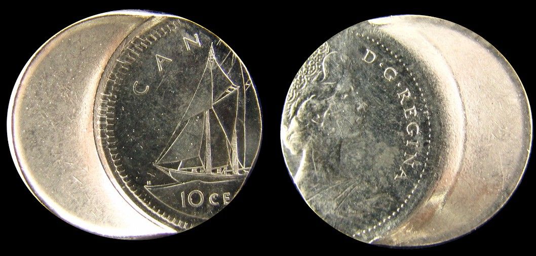 Undated 10¢ Elizabeth ERROR example. 50% Off centrer Cap strike coin. UNC.