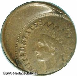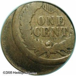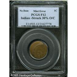 <B>Undated 1C Indian Cent--Struck 30% Off Center--Fine 12 PCGS.</B></I> Struck off center at 5 o'clock. Olive-brown with intermingled steel and light pinkish toning.<BR><I>From The Larry Rausch Collection, Part Three.</B></I> Lot:10820