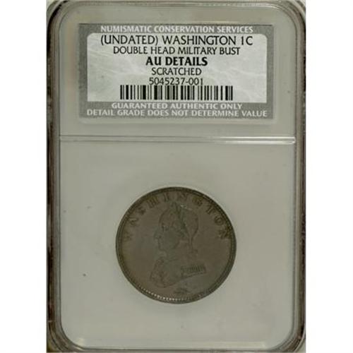 <B>Undated 1C Washington Cent Double Head Military Bust--Scratched--AU Details NCS.</B></I> NGC Census: (0/0). PCGS Population (26/72). (#692)<BR><BR><b>Shipping:</b> Coins & Currency (<a target="_blank" href="http://www.heritageauctions.com/common/shipping.php">view shipping information</a>)