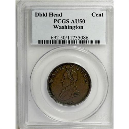 <B>Undated 1C Washington Double Head Cent AU50 PCGS.</B></I> PCGS Population (26/72). NGC Census: (0/0). (#692)<BR><BR><b>Shipping:</b> Coins & Currency (<a target="_blank" href="http://www.heritageauctions.com/common/shipping.php">view shipping information</a>)