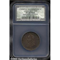 Undated 1C Washington Double Head Cent XF40 Details, Improperly Cleaned, NCS. Baker-6, R.1. Struck circa 1815-1820. The glossy mauve and olive surfaces are a bit bright, and the ONE CENT side has a pair of fingerprint fragments along the left border. Listed on page 50 of the 2000 Guide Book. Important notice: Heritage usually auctions material at the rate of 200-250 lots per hour. On some occasions eBay Live bid software or the Internet may not be able to keep up with the pace of the auction. We recommend placing a realistic absentee bid now as insurance to avoid disappointment. Occasionally the auctioneer may eliminate or reject an eBay Live bid, and the auctioneer may also reopen a lot after the close of the eBay live bidding (usually because we missed an audience bid), and may reject your bid even if it shows you as the winning bidder. By bidding via eBay Live, you agree that Heritage may award the lot to another bidder at its sole discretion under the circumstances described above or any other reasonable circumstances. Also please note that all Heritage lots purchased through eBay Live carry a 20% Buyer's Premium. Please make sure you read the Terms and Conditions before you bid.