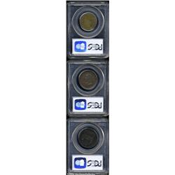 <B>Undated<1C> Washington Double Head Cent XF40 PCGS.</B></I> Baker-6, R.1, walnut-brown patina, a hint of verdigris, a couple of trivial rim dings; <B>1795 Washington Grate Halfpenny, Large Buttons, Reeded Edge VF30 PCGS,</B></I> Baker-29AA, R.1, an attractive mahogany-brown piece, an unimportant mark in the right obverse field; and an <B>Undated Washington Success Medal, Large Size, Plain Edge VF30 PCGS,</B></I> Baker-265, R.6, a golden-brown piece with the usual weakness on the all-seeing eye, mint-made die break across head as often seen. Listed on pages 59, 61, and 62 of the 2003 <I>Guide Book.</B></I> 3 Coins <BR><BR><B>Important notice:</B> Heritage usually auctions material at the rate of 200-250 lots per hour. On some occasions eBay Live bid software or the Internet may not be able to keep up with the pace of the auction. We recommend placing a realistic absentee bid now as insurance to avoid disappointment. Occasionally the auctioneer may eliminate or reject an eBay Live bid, and the auctioneer may also reopen a lot after the close of the eBay live bidding (usually because we missed an audience bid), and may reject your bid even if it shows you as the winning bidder. By bidding via eBay Live, you agree that Heritage may award the lot to another bidder at its sole discretion under the circumstances described above or any other reasonable circumstances. Since eBay bids are not shown to us until we open the lot on the floor, we treat those bids just like floor bids. In most cases the floor responds before the eBay bid is presented to us, due to Internet lag time, so for consistency we have made it a policy that floor bids are always considered first over tie eBay live bids. Also please note that all Heritage lots purchased through eBay Live carry a 20% Buyer's Premium. Please make sure you read the Terms and Conditions before you bid. </span></font></tr></table></td></tr></table>
