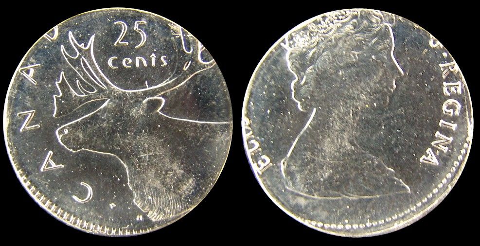 Undated 25¢ ERROR example. Struck on a 10¢ planchet. UNC.