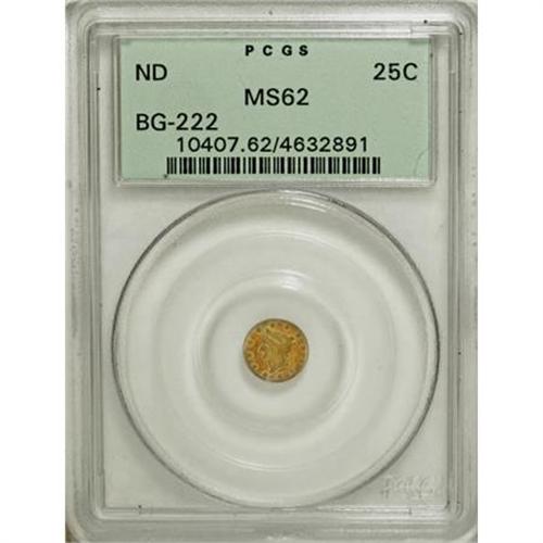 <B>Undated 25C Liberty Round 25 Cents, BG-222, R.2, MS62 PCGS.</B></I> PCGS Population (122/218). NGC Census: (13/31). (#10407)<BR><BR><b>Shipping:</b> Coins & Currency (<a target="_blank" href="http://www.heritageauctions.com/common/shipping.php">view shipping information</a>)