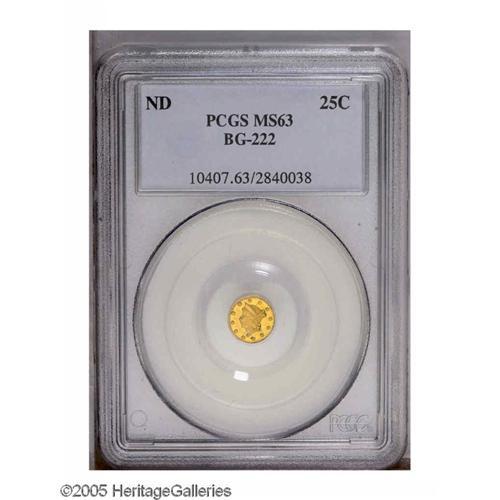 Undated 25C Liberty Round 25 Cents, BG-222, R.2, MS63 Undated[25C] Liberty Round 25 Cents, BG-222, R