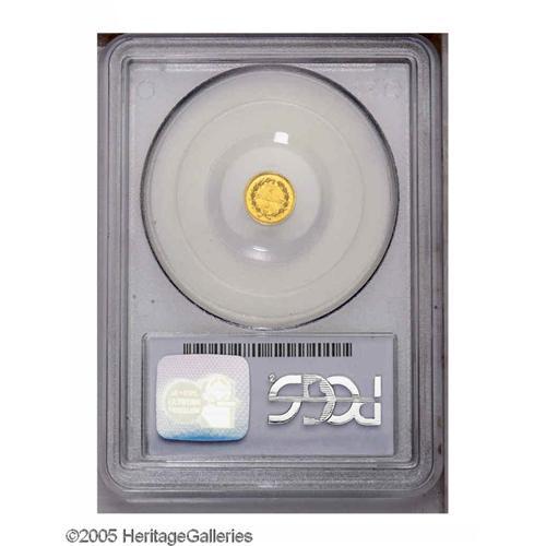 <B>Undated<25C> Liberty Round 25 Cents, BG-222, R.2, MS63 PCGS.</B></I> A somewhat subdued green-gold example of this handsome, if available, type. A relatively early die state without the eventual break near the first obverse star.<BR><I>From The Frank Manthey Collection of Gold Coins.</B></I>