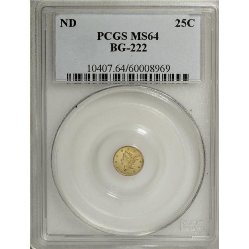 <B>Undated 25C Liberty Round 25 Cents, BG-222, R.2, MS64 PCGS.</B></I> PCGS Population (97/15). NGC Census: (20/16). (#10407)<BR><BR><b>Shipping:</b> Coins & Currency (<a target="_blank" href="http://www.heritageauctions.com/common/shipping.php">view shipping information</a>)