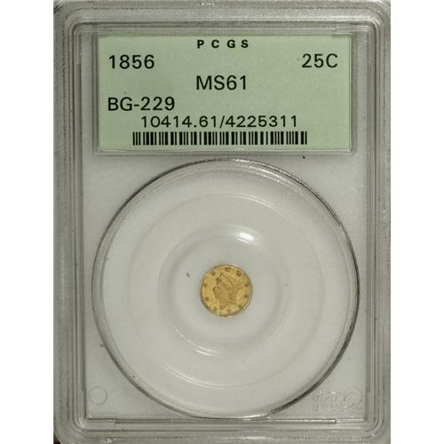 <B>Undated 25C Liberty Round 25 Cents, BG-223, Low R.4, MS62 PCGS,</B></I> well struck, pumpkin-gold toning, attractive; <B>Undated Liberty Round 25 Cents, BG-224, R.3, MS62 PCGS,</B></I> olive-gold with rose-red toning on the portrait, in a green label holder; and an <B>1856 Liberty Round 25 Cents, BG-229, R.4, MS61 PCGS,</B></I> a prooflike and evenly struck canary-gold example with light hairlines, in a green label holder.<BR><BR><b>Shipping:</b> Coins & Currency (<a target="_blank" href="http://www.heritageauctions.com/common/shipping.php">view shipping information</a>)