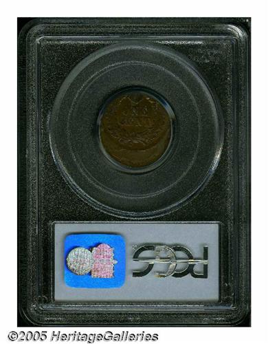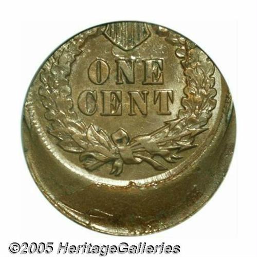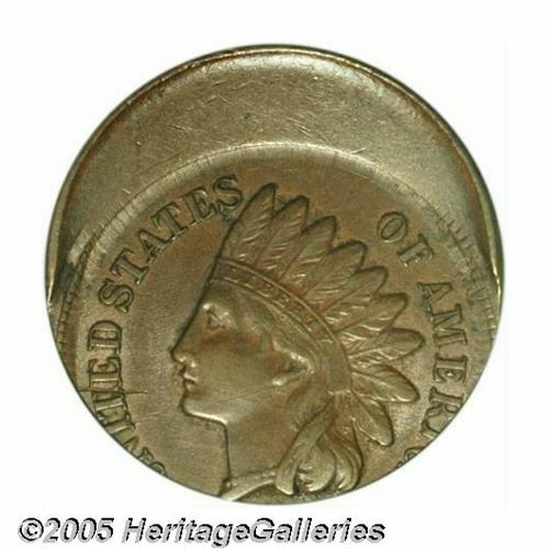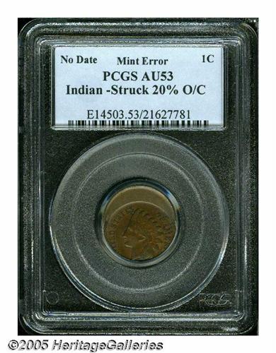 <B>Undated Indian Cent<1C>--Struck 20% Off Center--AU53 PCGS.</B></I> Struck off-center to the 6 o'clock position on the obverse, that date is missing from this desirable error specimen. The smooth surfaces exhibit deep reddish-brown color.<BR><I>From The Larry Rausch Collection, Part Five.</B></I>