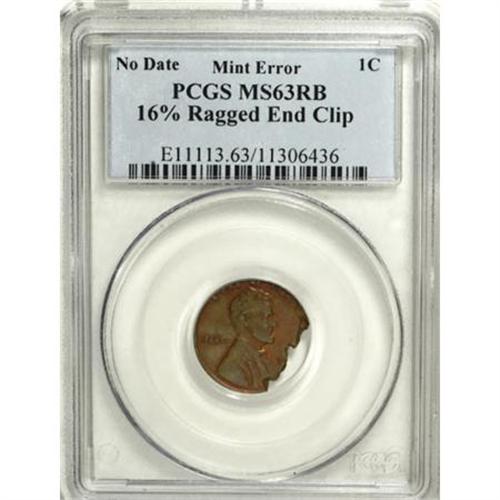 <B>Undated Lincoln Memorial Cent 1C --16% Ragged End Clip--MS63 Red and Brown PCGS.</B></I> This bronze or brass cent, mahogany with distinct brick-red, pink, and orange overtones, has a void that affects much of the right obverse rim. The planchet was punched overlapping the ragged end of the planchet strip. The void affects the area where the last two digits of the date and the mintmark would be.<BR><BR><B>Coin Engraver:</B> Victor D. Brenner<BR><BR><b>Shipping:</b> Coins & Currency (<a target="_blank" href="http://www.heritageauctions.com/common/shipping.php">view shipping information</a>)
