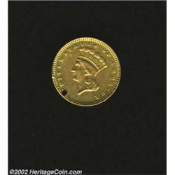(Undated) Love Token on a Gold Dollar VF20 Holed, Cleaned. A Type Three Gold Dollar was planed off on the reverse and the initials SH were elaborately carved onto that side in typical 19th century style. Holed at 7 o'clock on the obverse for suspension. Important notice: We expect to be auctioning lots at the rate of 200-250 per hour. Sometimes eBay Premier live bid software cannot keep up with that pace, so we strongly recommend that you place a realistic proxy bid now as insurance to avoid disappointment. Also please note that all Heritage/CAA lots purchased through eBay Premier carry a 20% Buyer's Premium. Please make sure you read the Terms and Conditions.