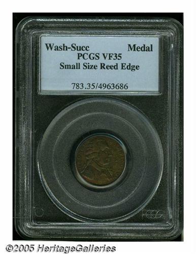 <B>Undated<MEDAL> Washington Success Medal, Small Size, Reeded Edge VF35 PCGS.</B></I> Baker-267, Breen-1289, R.6. Bold for the assigned grade, this golden-brown and deep sea-green example does have a few noticeable pinscratches, two among which are at 11 o'clock on the obverse. Listed on page 68 of the 2005 <I>Guide Book.</B></I>