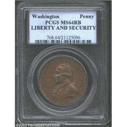 Undated PENNY Washington Liberty & Security Penny MS64 Red and Brown PCGS. Baker-30, R.2. Orange-bro