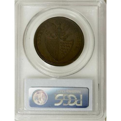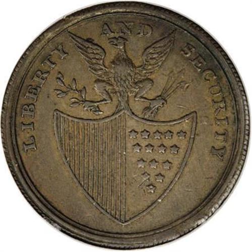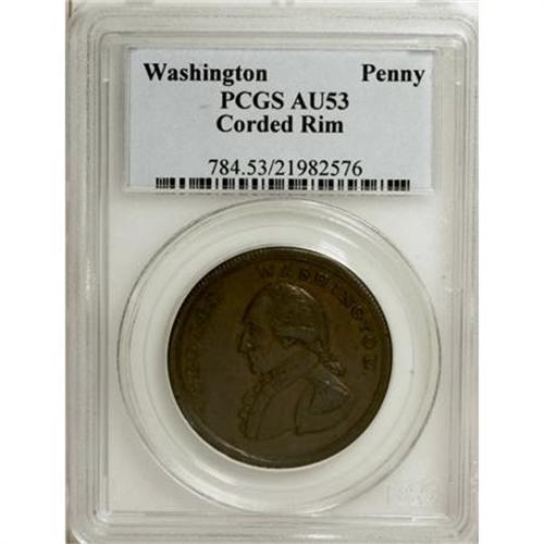 <B>Undated PENNY Washington Liberty & Security Penny, Corded Rim AU53 PCGS.</B></I> Baker-30E. Misattributed as a 1783 Small Military Bust by PCGS. Unlike the more common Plain Rims variant (Baker-30), the rims do not have a lumpy appearance, and the rim near the edge is grooved. This moderately circulated chocolate-brown Washington piece has only trivial contact for the grade, and the reverse exhibits only a trace of verdigris. Listed on page 62 of the 2008 <I>Guide Book.</B></I><BR><BR><b>Shipping:</b> Coins & Currency (<a target="_blank" href="http://www.heritageauctions.com/common/shipping.php">view shipping information</a>)