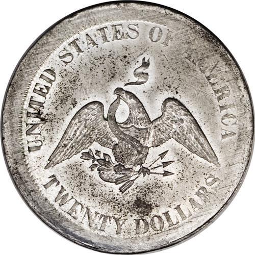 Undated (circa 1858) Twenty Dollar Reverse Die Trial, J