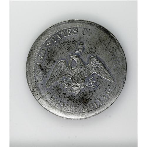 <B>Undated (circa 1858) Twenty Dollar Reverse Die Trial, Judd-A1857-7, Pollock-3149, High R.7, PR62 Uncertified.</B></I> A precursor to the famous 1861-dated Paquet Reverse double eagles, although on this design DOLLARS is spelled out, and the eagle is similar to Judd-222 but is smaller, and the wings are spread. Struck in white metal with a plain edge. Minor russet toning is present, and a couple of light marks are noted near AMERICA. Pollock was able to trace three different examples, while the Seventh Edition of Judd states "Five known."<BR><I>Ex: Dr. Walter Lee Crouch Collection (Superior, 6/77), lot 610.</B></I><BR><BR><b>Shipping:</b> Coin/Currency (<a target="_blank" href="http://www.heritageauctions.com/common/shipping.php">view shipping information</a>)