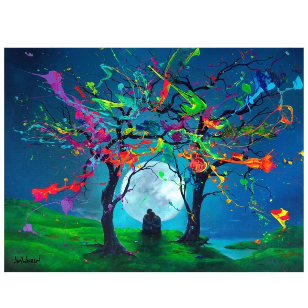 "Under the Tree of Life" is an AP numbered, artist embellished limited edition giclee on canvas by Jim Warren. The piece is hand signed and accompanied by a letter of authenticity. Measures approximately 18" x 24" (image).