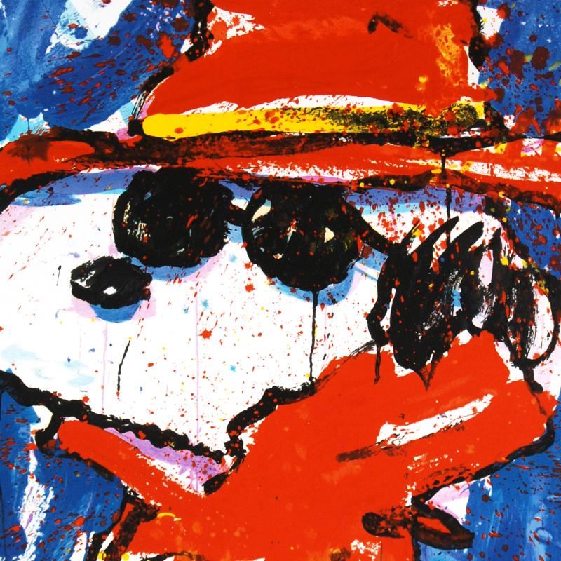 Master Artist Tom Everhart is the protege of famed "Peanuts" creator, Charles M. Schulz (1922â€"2000). As the only artist in the world granted the rights to draw the "Peanuts" characters in his own work, Everhart creates vibrant, extremely collectible rainbow masterpieces featuring Snoopy, Woodstock and the gang. "Undercover in Hollywood" is a limited edition hand pulled original lithograph on museum quality deckle-edge paper, numbered and hand signed by Everhart! Includes Certificate of Authenticity! Measures approx. 23" x 30" (image only/no border). This artwork was created on one of two rare antique Marinoni Voirin lithograph presses that date back to the 1800's, and are reputed to come from the Paris print shop used by Henri Toulouse-Lautrec. There are only 7 of these magnificent beasts left in the world: the smaller one (with a print bed size of 25" x 35"), weighs 9 tons, and the larger one weighs in at 11 tons (print bed size 31" x 47"). The significance of this is that the lithographs produced by this method are of the finest quality, using techniques that are so labor and time intensive that very few master printers know how to operate and care for these presses today. Each lithograph is created with hand-mixed colors applied one at a time - a highly trained and synchronized team must hand feed each museum-quality sheet of paper through the press numerous times in order to set the colors and impressions, while the Chromist - a trained color specialist - adjusts each color by look and feel to match the original artwork, as if mixing a potion. The result is an image with maximum pigment saturation, formed through rich layers of color that imbue the artwork with a permanency of brilliance - proven over centuries to last. In contrast, today's printers use a method more akin to a dot matrix style application, with the colors all premixed and sprayed onto a sheet in a uniform layer, resulting in a much less saturated image that is susceptible to fading and imperfect color reproduction. This is one of the final Tom Everhart editions to be printed using this very special technique.
