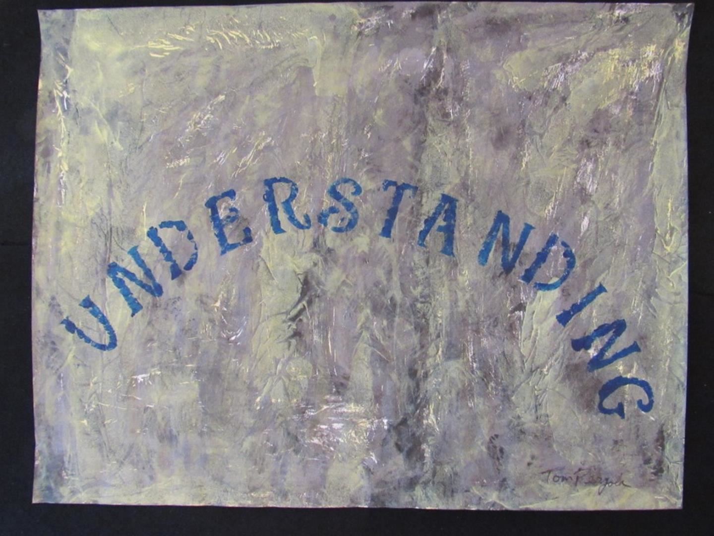 A colorful abstract acrylic painting by California artist Tom Pergola. 18x24" on irregular acid-free art paper, with COA.
