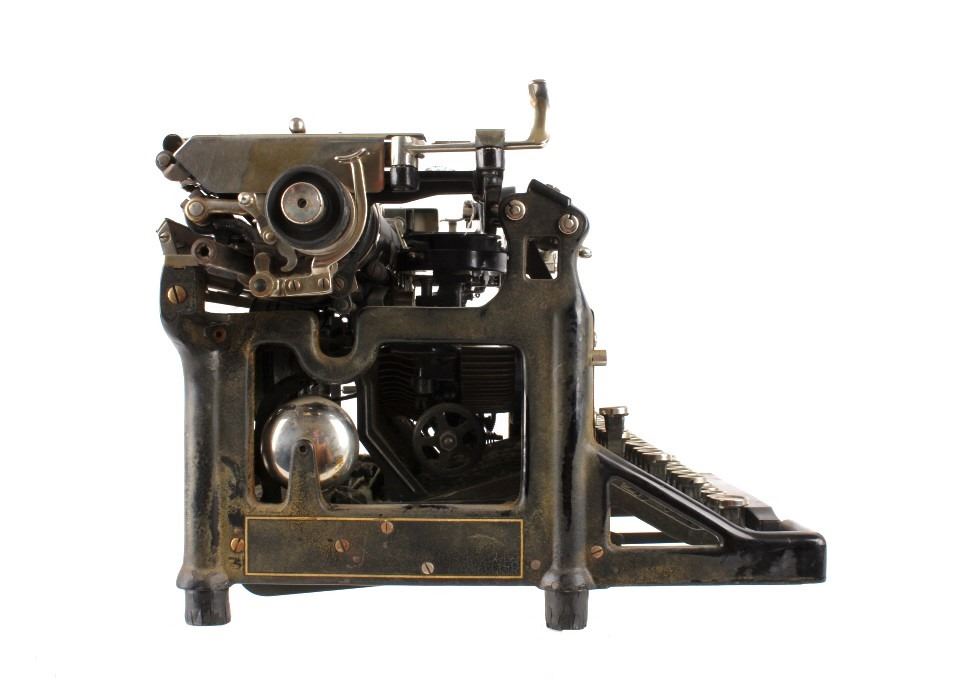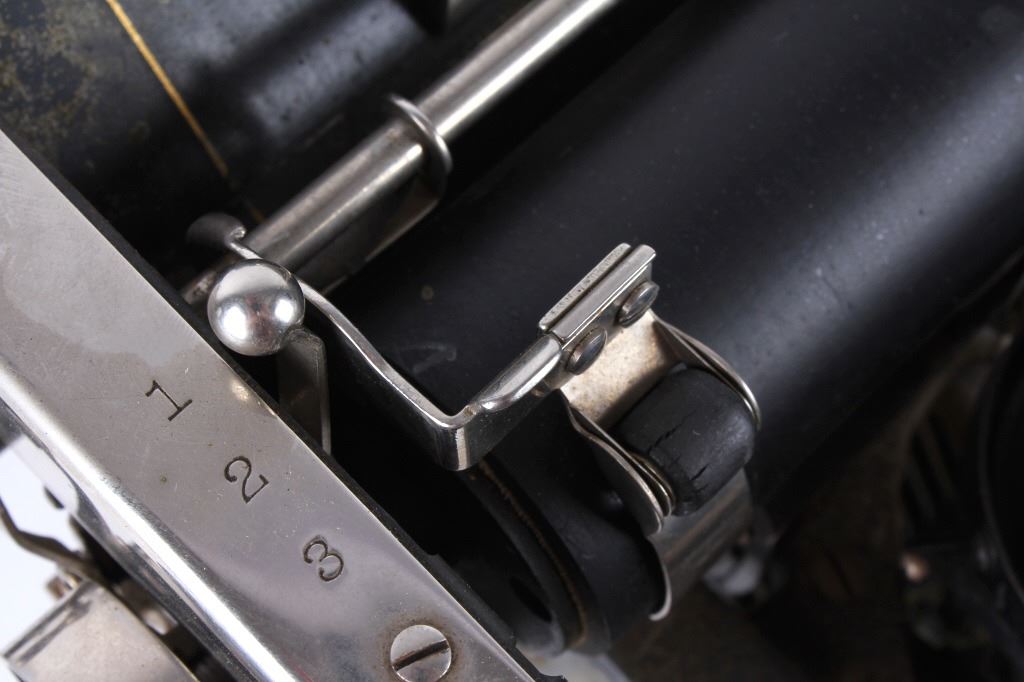 For your consideration is this Underwood Standard Typewriter No. 5 circa 1917. The typewriter being the precursor of our modern computers; shows iconic design and craftsmanship that was frequently seen from Underwood typewriters. The Underwood Typewriter Company was a manufacturer of typewriters headquartered in New York City, New York. Underwood produced what is considered the first widely successful, modern typewriter. This typewriter shows good overall condition with some of the buttons sticking and its age correctly seen in the slight oxidation adorning its frame. The measurements of this typewriter are 10" x 16" x 12".