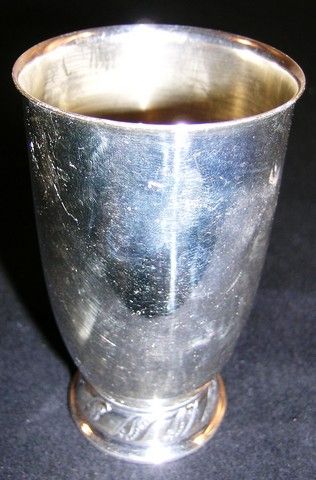 This prop comes from the action-fantasy 'Underworld: Rise of the Lycans', the 2009 film starring Michael Sheen and Rhona Mitra. It is a silver colored chalice, used in the production of the film. (Measures approx. 4.5" high, 2.5" diameter)