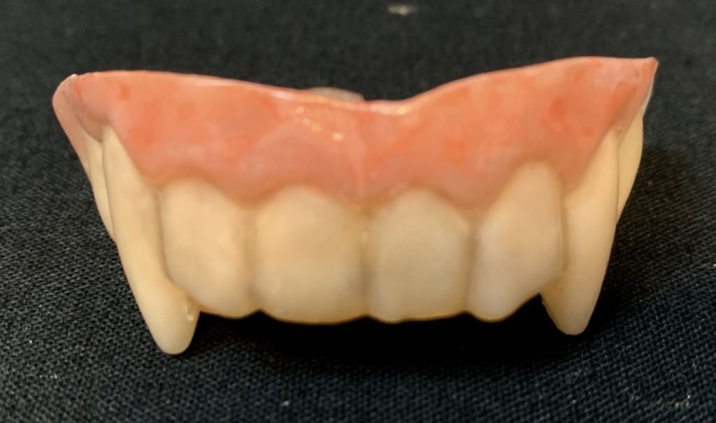 Original set of Vampire fangs used in the action horror film Underworld Awakening (2012) where, when human forces discover the existence of the Vampire and Lycan clans, a war to eradicate both species commences. The vampire warrior Selene leads the battle against humankind. With Kate Beckinsale reprising her role as Selene, joined by Theo James, Michael Ealy, and India Eisley.