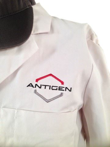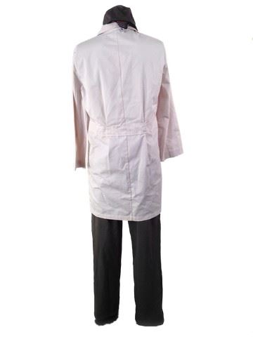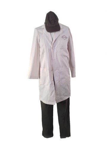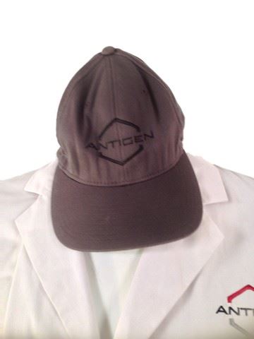Screen worn, Antigen med tech outfit, grey"Flexfit" antigen hat(S-M), white antigen lab coat with the antigen logo on the left breast(38), grey gortex like pants, inside of pants near zipper reads "Charles J.X." hand written in pen.