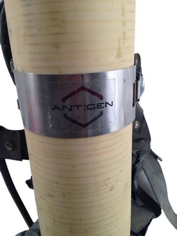 Screen used, Antigen metal oxygen tank with straps and pressure tracker. (oxygen tank approx. 22" x 5") (pressure tracker approx. 9" x 3.5") (oversized item)