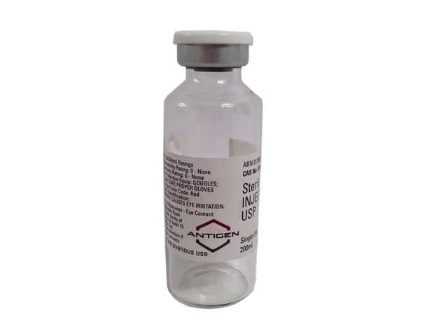 Screen used, hero, Antigen single use 200ml liquid filled glass vial with metal and rubber cap (3" high, 1" circumfrence).