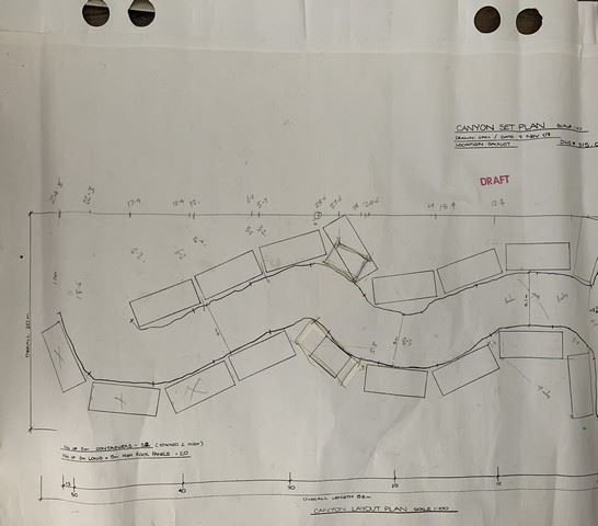 Original drawings/blueprints from the art department/production design dated 2007. Canyon layout plan, castle courtyard, and landscape drawing.