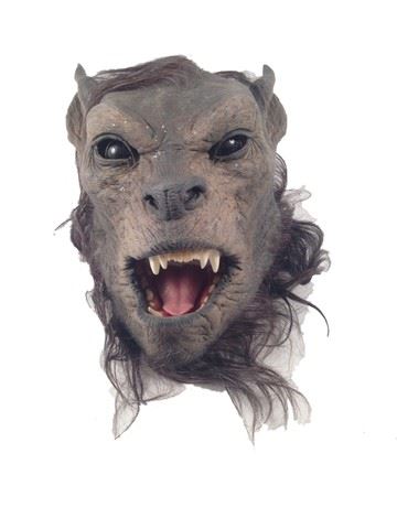 Screen used, hero lycan head mask made of latex with hair, black eyeballs, realistic tongue and teeth (approx. 16"x10")