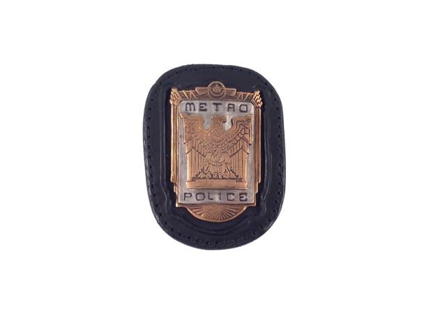 Kolb's (Jacob Blair) screen used, hero metal police badge with leather holder. (approx. 3 1/2" x 5")