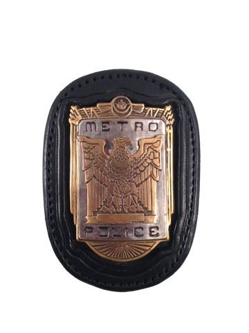 Screen used Metro Police badge (metal) with gold colored emblem in leather holder with clip on back. (4.5"x3")
