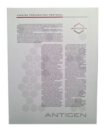 Screen used Page from the Antigen Laboratory 'Vaccine Preparation Protocol' file, printed on grey stationary paper (11x8.5).
