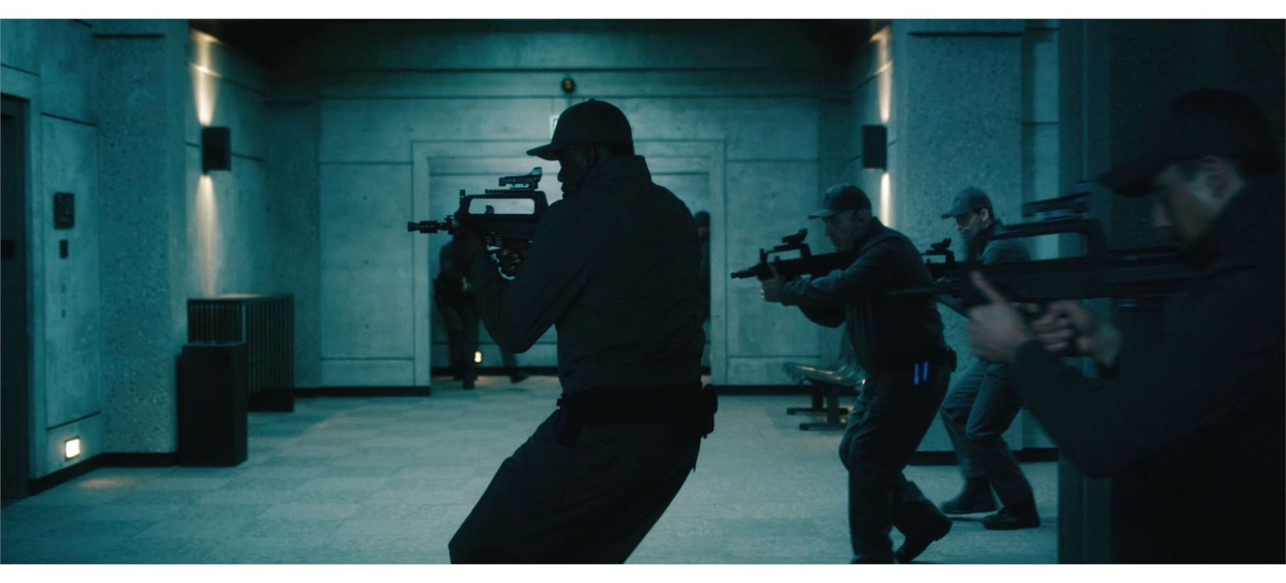 SWAT Guard screen used, black Type 97 Machine Gun, made from solid rubber. The end of the butt shows metal frame cutting through, and the front tip is slightly bent. This is a prop only and cannot be made to fire in any way. (approx. measures 24" x 13")