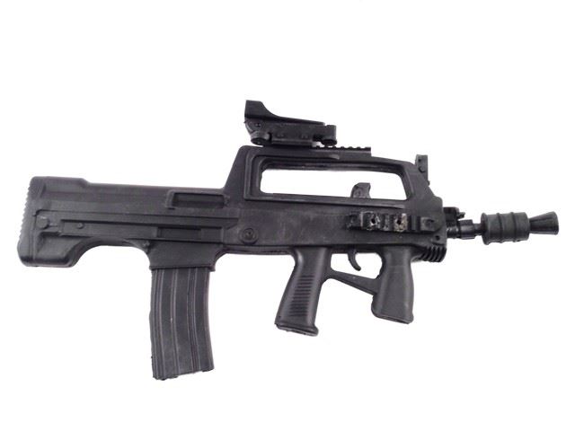 SWAT Guard screen used, black Type 97 Machine Gun, made from solid rubber. The end of the butt shows metal frame cutting through, and the front tip is slightly bent. This is a prop only and cannot be made to fire in any way. (approx. measures 24" x 13")