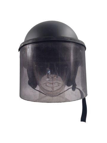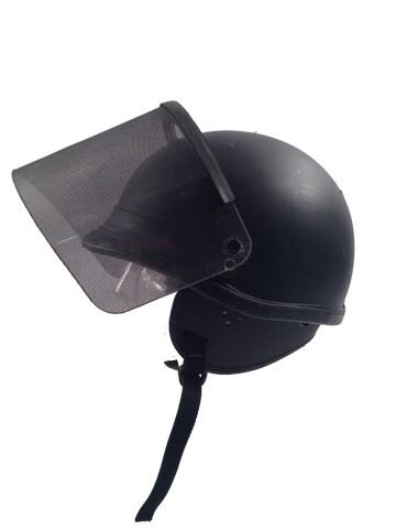 SWAT Guard hard shell black motorcycle helmet with cloth and foam interior, chin strap and plastic and mesh visor. (13x10x8)