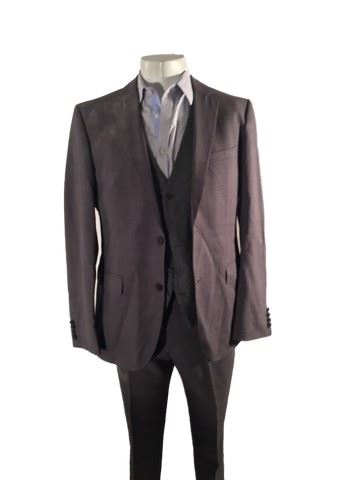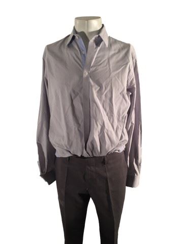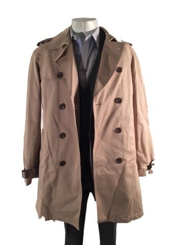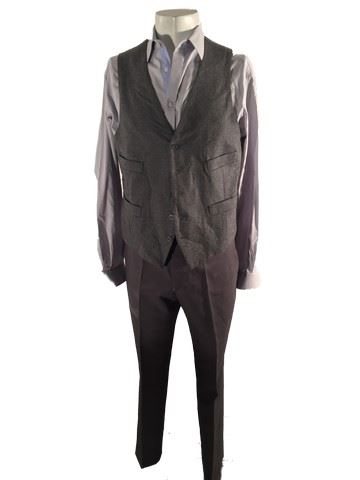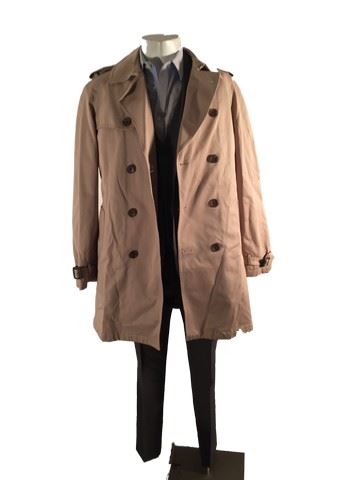 Sebastian (Michael Ealy) screen worn, stunt, khaki "Banana Republic" trench coat, grey "Hugo Boss" suit jacket with matching pants, grey wool vest, blue "Zara Man" dress shirt, soiled and torn slightly by production. Used in the fight scene when they fall in the puddle. All items labeled "Sebastian Stunt.