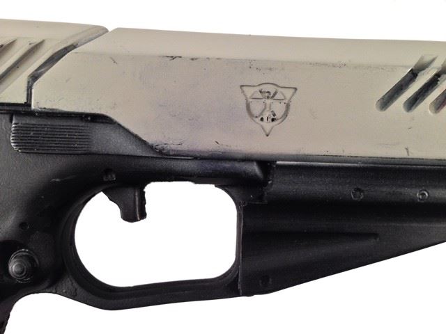 Selene (Kate Beckinsale) screen used Antigen Guard's, hero, silver and black Antigen Pistol made from plastic. Trigger missing. This is a prop only and cannot be made to fire in any way. Hand painted silver. (approx. measures 9" x 6" x 1.5")