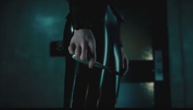 Selene's (Kate Beckinsale) hero, bloody scalpel. Made of plastic. There are bits of wax paper stuck to parts of the bloody tip. (7" long).