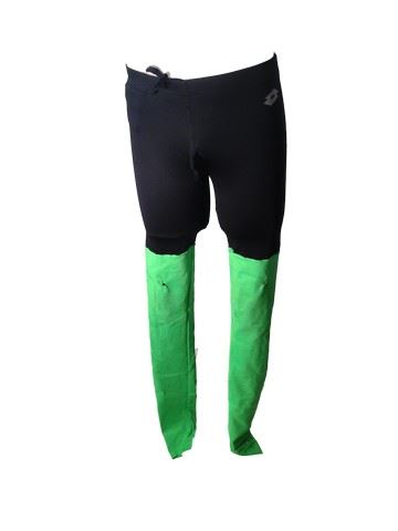 Green screen spandex leggings with black waist and black hood. Worn by the actors for use during special effects sequences with the bigger green/blue lycan suits.