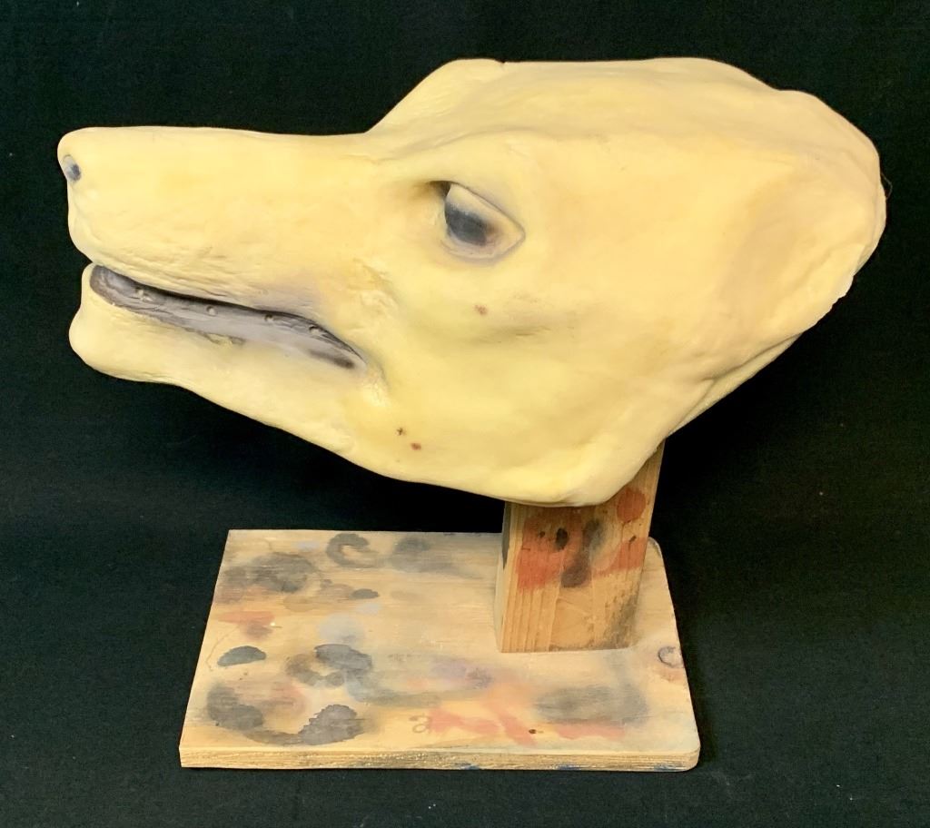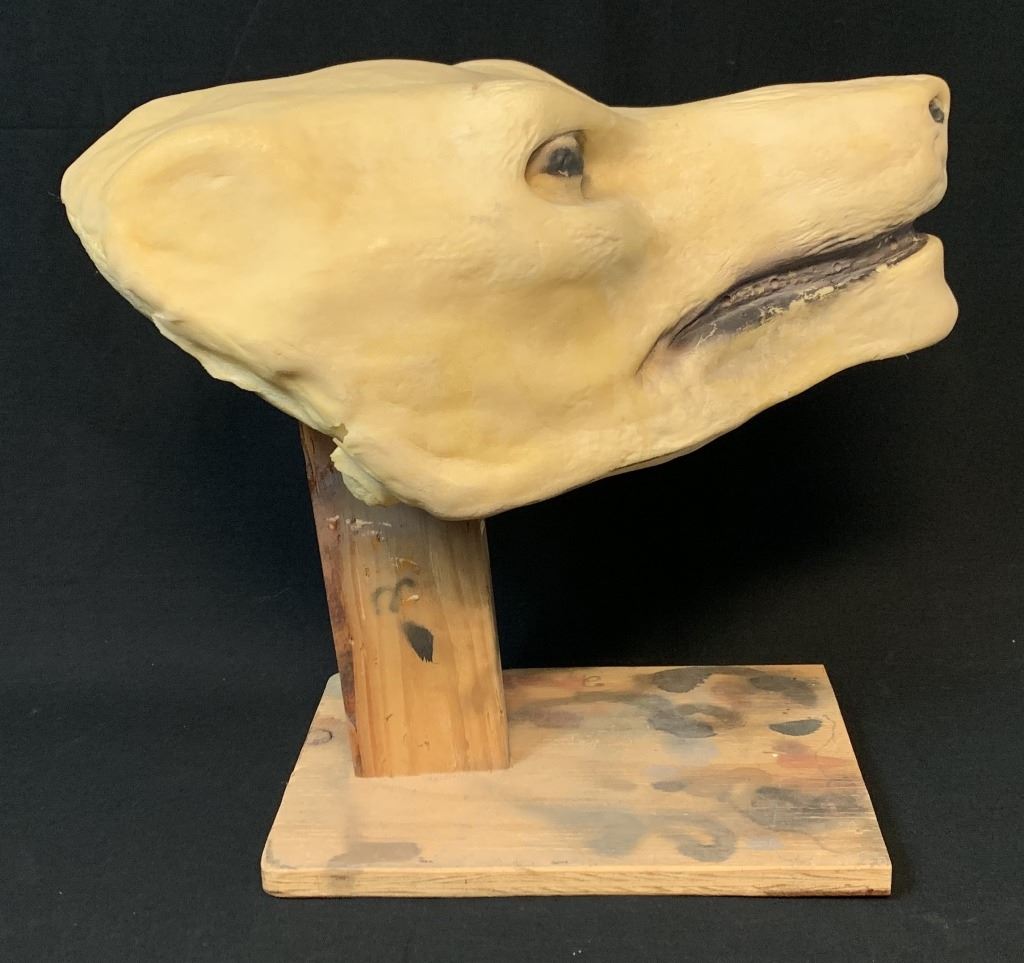 Original Lycan head cast mounted on a wooden display to keep it's shape, from the action horror film Underworld: Evolution (2006) where vampire warrior Selene and the half werewolf Michael hunt for clues to reveal the history of their races and the war between them.