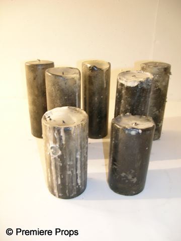 A lot of (7) screen used, featured black candles from the 2006 horror film 'Underworld: Evolution.' The candles are all made with black wax and show slight degrees of use, though none has been used significantly. Used in Tannis' Prison. (measures approx. 5 5/8" high & 3" diameter ea.) Oversized item. Additional Postage Required.