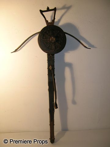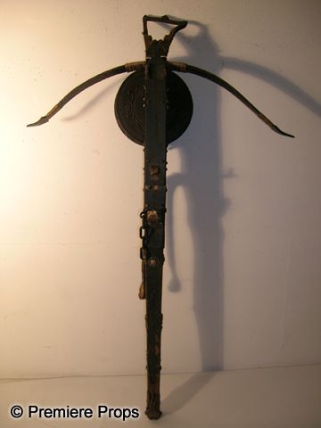 From 2006's 'Underworld: Evolution,' this is a screen used, hero Death Dealer Crossbow. The crossbow is made from heavy wood, with a wooden handle and a plastic chain. (measures approx. 47"x 26"x 10") Oversized item. Additional Postage Required.