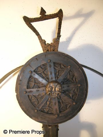 Premiere Props nor the consignor makes any warranties, expressed or implied, as to merchantability or fitness for a particular purpose, the correctness of the catalogue or other description of the physical condition, size, quality, rarity, importance, medium, provenance, exhibitions, literature, historical relevance of any property, intended use, condition of the property (including any condition report), correctness of description, origin, measurement, quality, rarity, importance, exhibition, relevance, attribution, source, provenance, date, authorship, condition, culture, genuineness, value, or period of the property. Additionally, neither Premiere Props nor the consigner makes any representation or warranty, expressed or implied, as to whether the Bidder acquires any copyrights, including but not limited to any reproduction rights of any property, or other intellectual property (including exhibition or reproduction rights) or whether the property is subject to any limitations such as ‘droit morale’ (moral rights) or other rights affecting works of art. Premiere Props does not make any representation or warranty as to title.