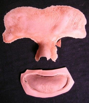 Between realistic and gory battle scenes and the transformation of man to beast, the "Underworld" franchise utilizes an army of special effects and make-up artists. Here, from Underworld: Evolution (2006) are screen used hybrid forehead and chin appliances.